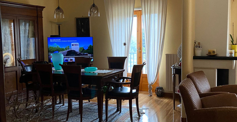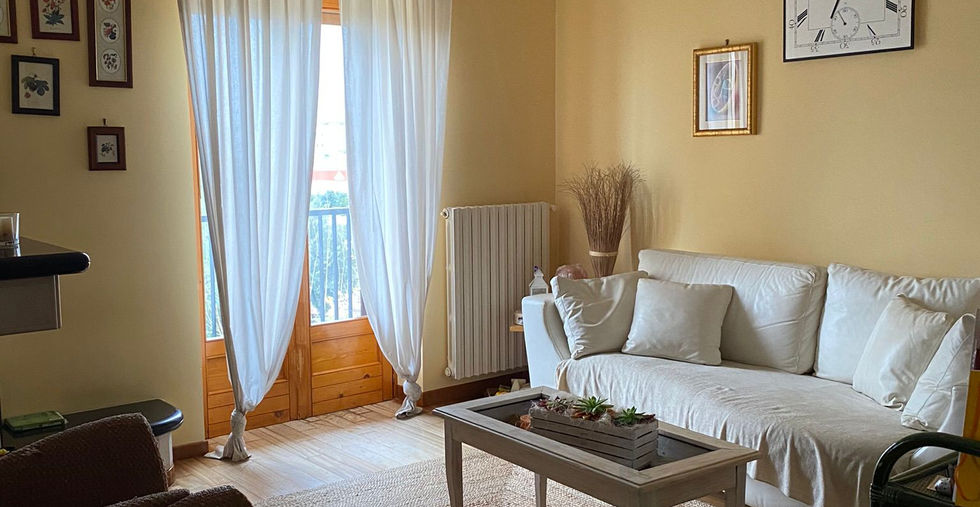 L'ingresso si apre su un'ampia zona giorno composta da doppia sala, entrambe con accesso diretto al primo balcone, e da un cucinino con finestra.