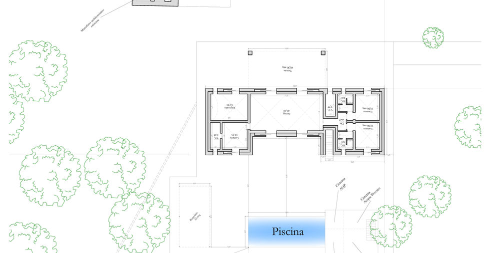 L'immobile si estende su di una superficie di 110,63 mq, suddivisa in 4 vani di cui, un ampio Living con doppio affaccio, 3 luminose camere da letto con annessi 3 bagni e deposito. All'esterno, la Villa si stende su di un terreno di 14.820 mq, offrendo anche la costruzione di una tettoia che sporge dal vano giorno e di un delizioso pergolato ubicato nei pressi della piscina di 40 mq.